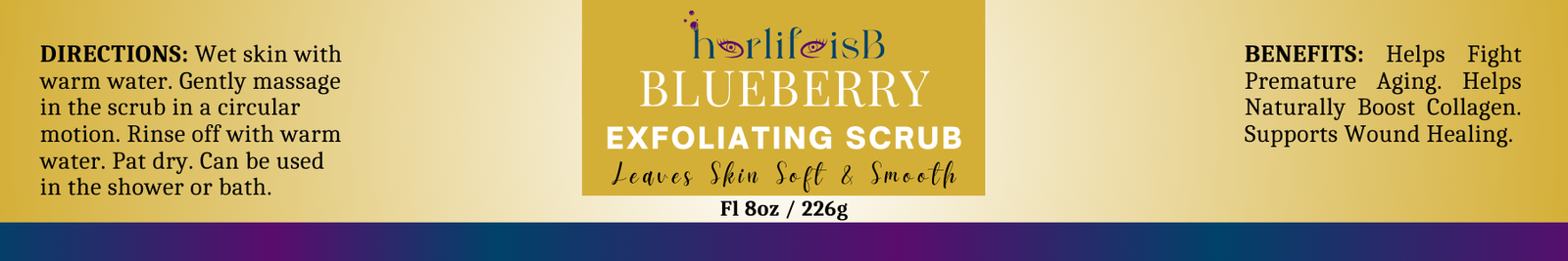- **Hydration Haven:** Enriched with moisturizing ingredients, our blueberry scrub deeply hydrates and nourishes your skin. Experience a luxurious pampering session as these ingredients work in harmony to soften and condition, leaving you with a supple and silky-smooth complexion.