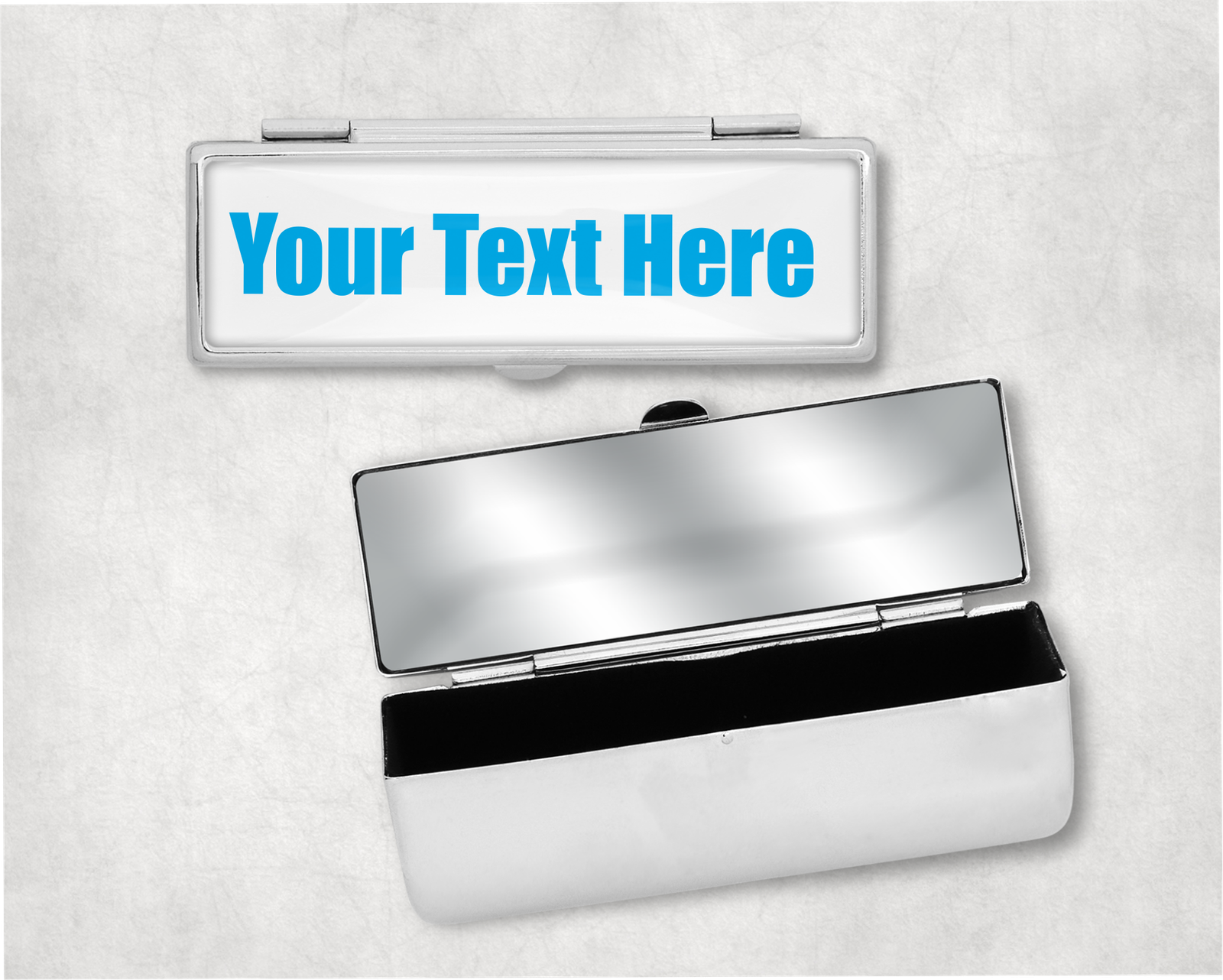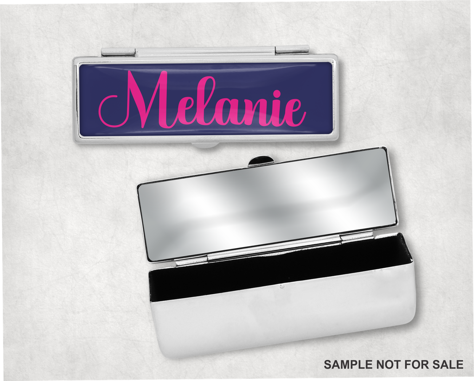 Clamshell Lipstick Tin Box with Mirror. Stainless Steel. 3 1/2″ x 1 1/4″